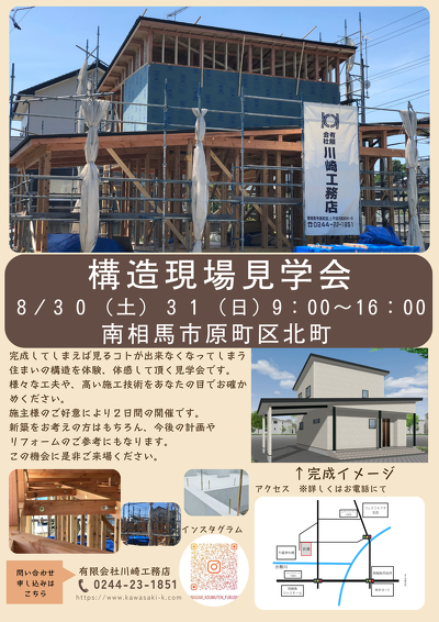 (有)川崎工務店では、構造現場見学会を行います。